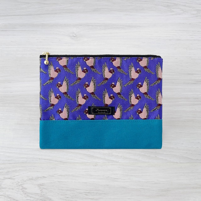 ジャガードポーチ 小鳥柄(ロイヤルブルー)