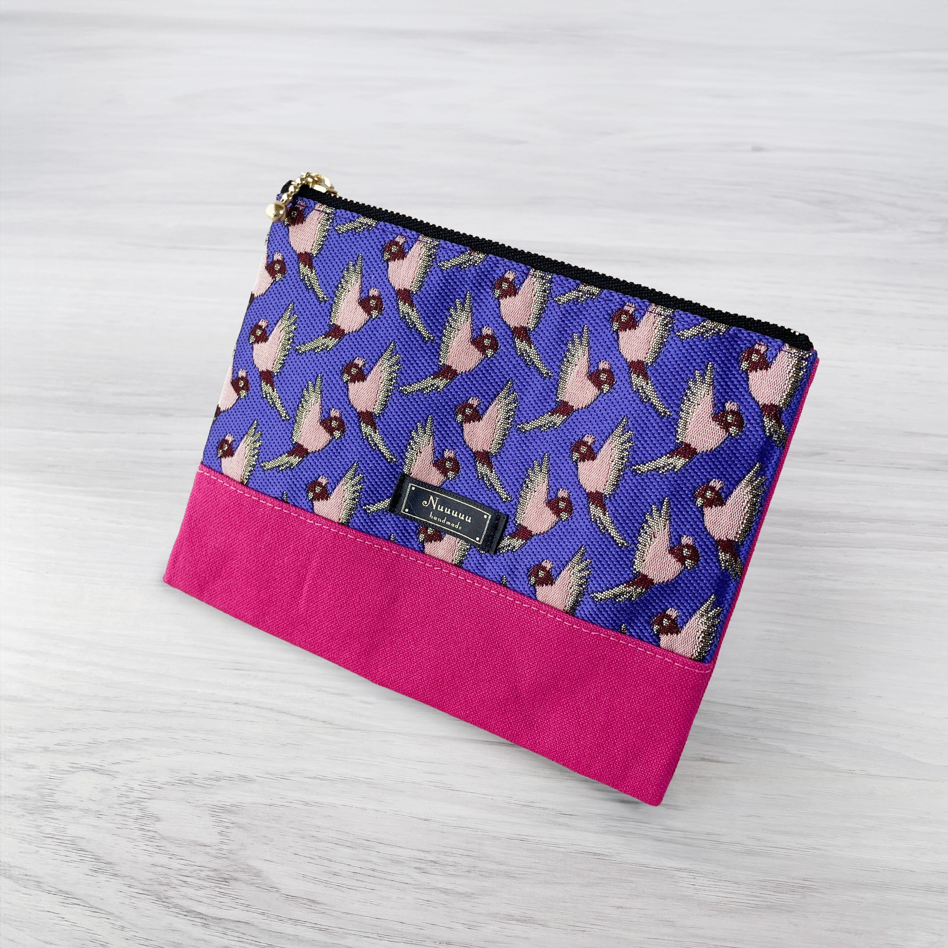 ジャガードポーチ 小鳥柄(ビビットピンク)