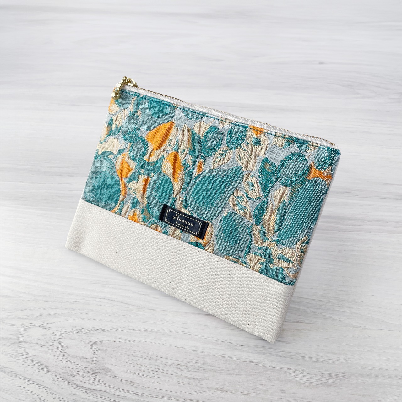 ジャガードポーチ オレンジマーブル(アイボリー)