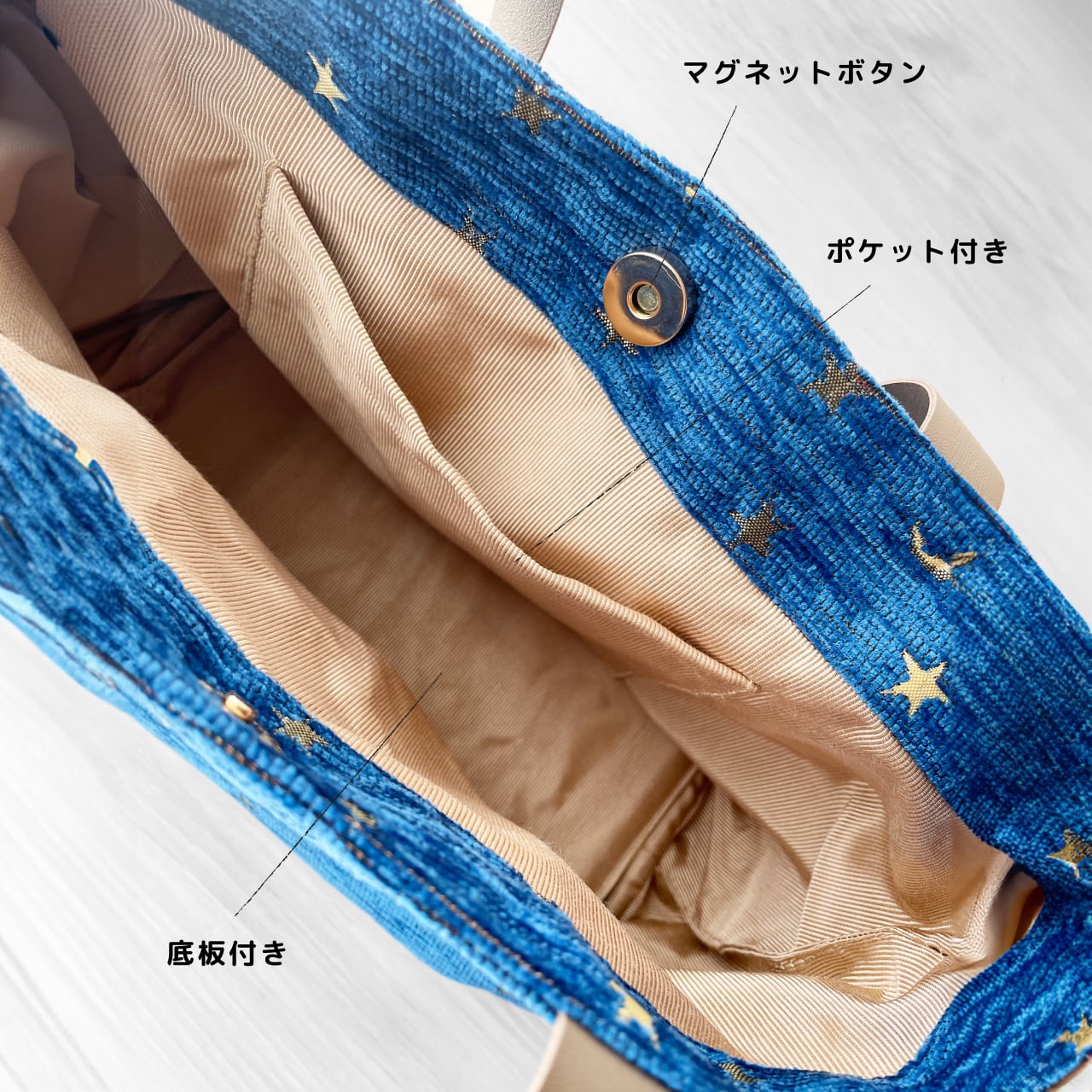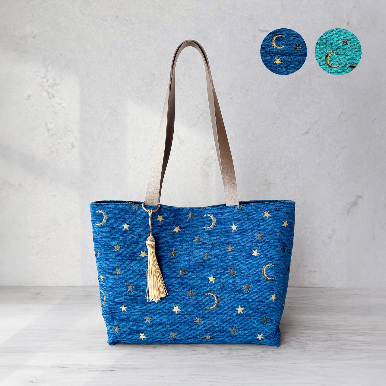 月と星の物語を織り込んだ生地。